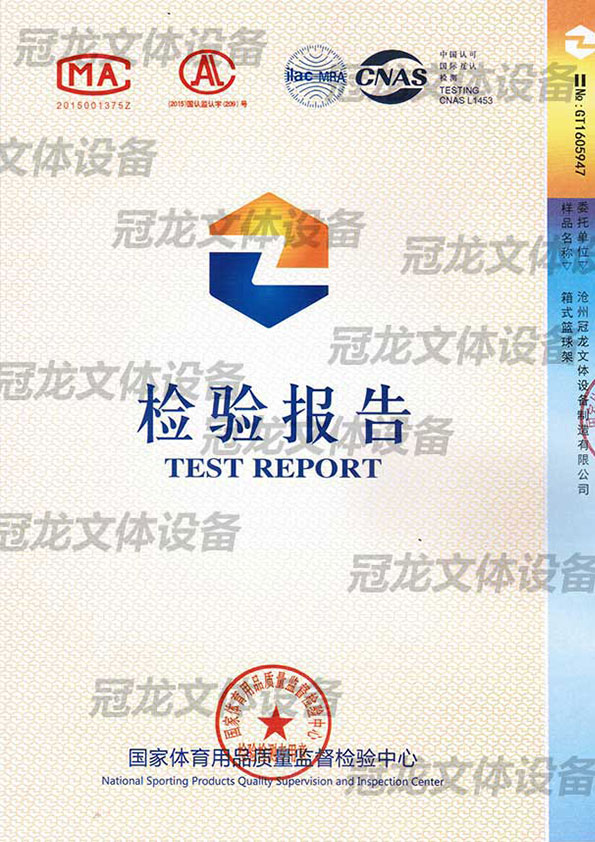 箱式篮球架检验报告