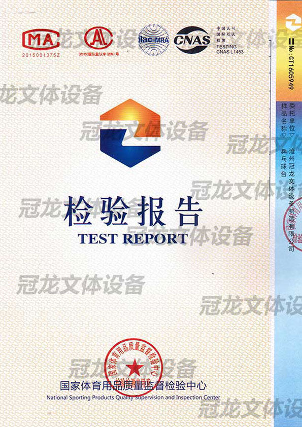 乒乓球台检验报告