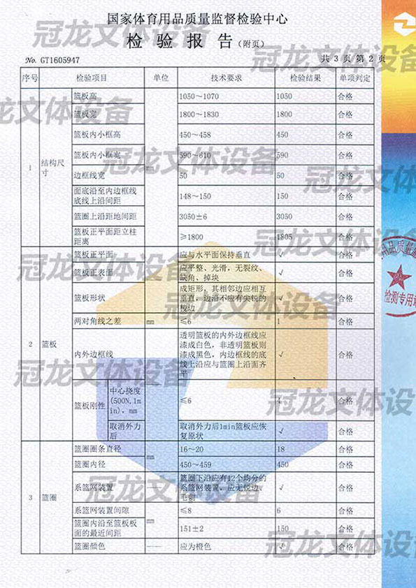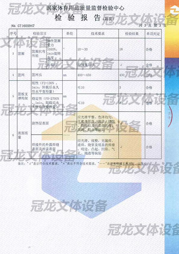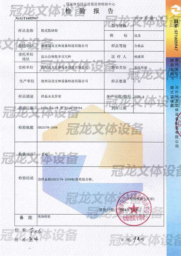 箱式篮球架检验报告